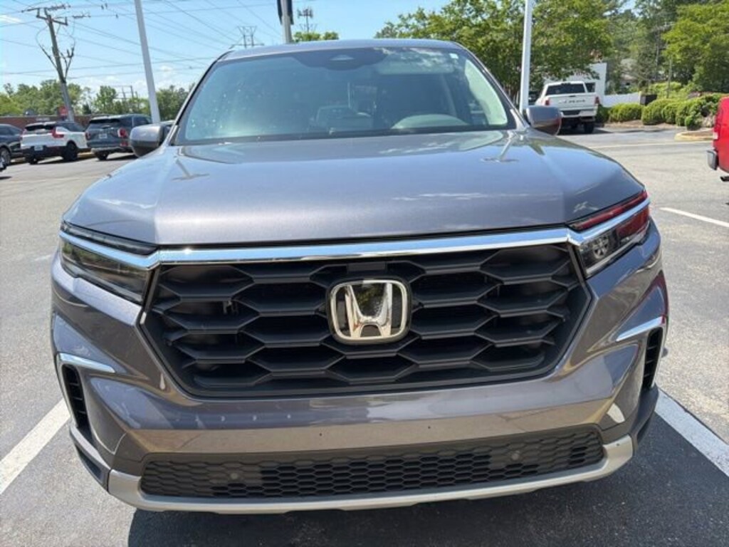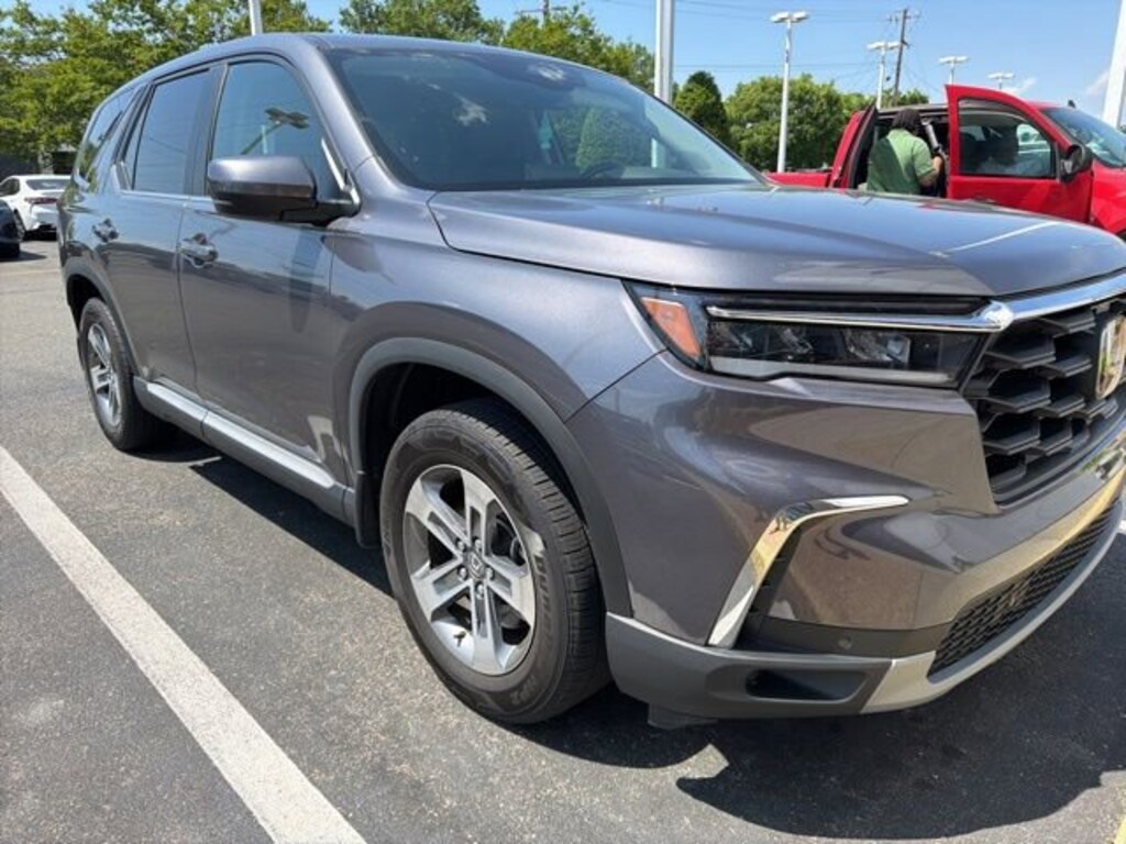 Boasting a sleek Gray exterior, the 2023 Honda Pilot EX-L 8 Passenger exudes a refined and sophisticated presence. The 18-inch Machined Face Pewter Gray alloy wheels and body-color bumpers further enhance the vehicle's stylish appearance.